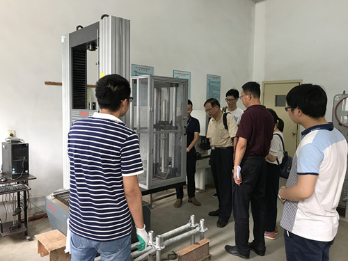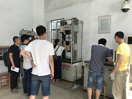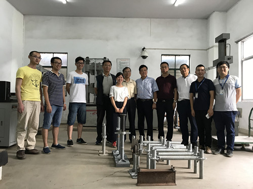 7月1日,工程建設行業標準《建筑施工承插型盤扣式鋼管支架安全技術標準》JG 231修訂版征求意見稿會議在南京召開,標準編制組全體人員參加了會議。 標準修編,試驗先行。根據會議要求,近期,由東南大學、無錫市前友工程咨詢檢測有限公司、江蘇速捷模架科技有限公司在前期已進行大量試驗的基礎上,再進行系列盤扣架構配件、整架和堆載應用的實驗、試驗和檢測,為標準選用參數指標和驗收要求提供更科學的依據。 7月8日,東南大學郭正興教授等標準主編人員來到無錫市前友檢測公司,指導盤扣架試驗,包括連接盤單側抗剪強度試驗、連接盤雙側彎剪強度試驗、連接盤抗拉強度、連接盤內側環焊縫抗剪強度試驗、可調托撐和可調底座抗壓強度試驗。江蘇省土木建筑學會秘書長王華研究員級高級工程師也親臨現場給予指導。